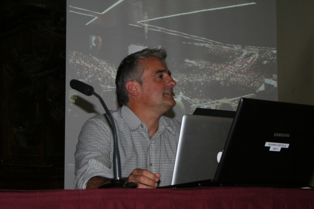 Asier Altuna “Bertsolari” filmaren sormen prozesuaz azalpenak ematen, Huhezinema jaialdian.
