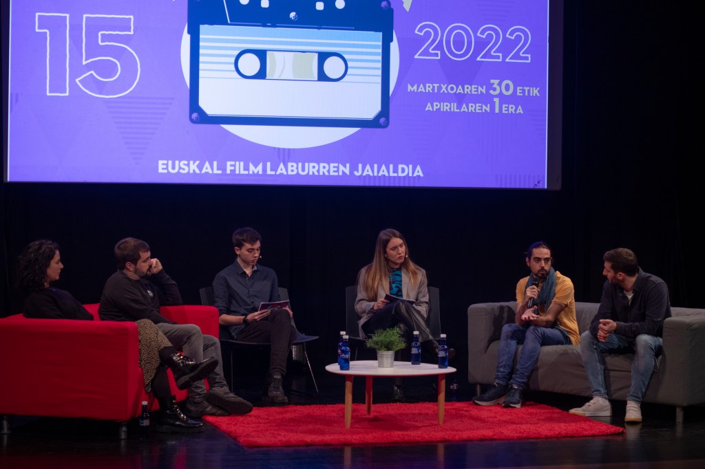 Lehen eguneko urduritasunak alde batera utzi genituen ikasle ohien topaketari hasiera emateko. Asier Rekalde, Mikel Alvarez, Egoitz Ibargoitia, Julen Higuera eta Itxaso Frau bildu ziren eszenatokian eta haien lan espereientzien inguruan hitz egin ziguten, hasierako lanak, horietatik oraingoetara pasatzea eta beste hainbat esperientziaren inguruan.