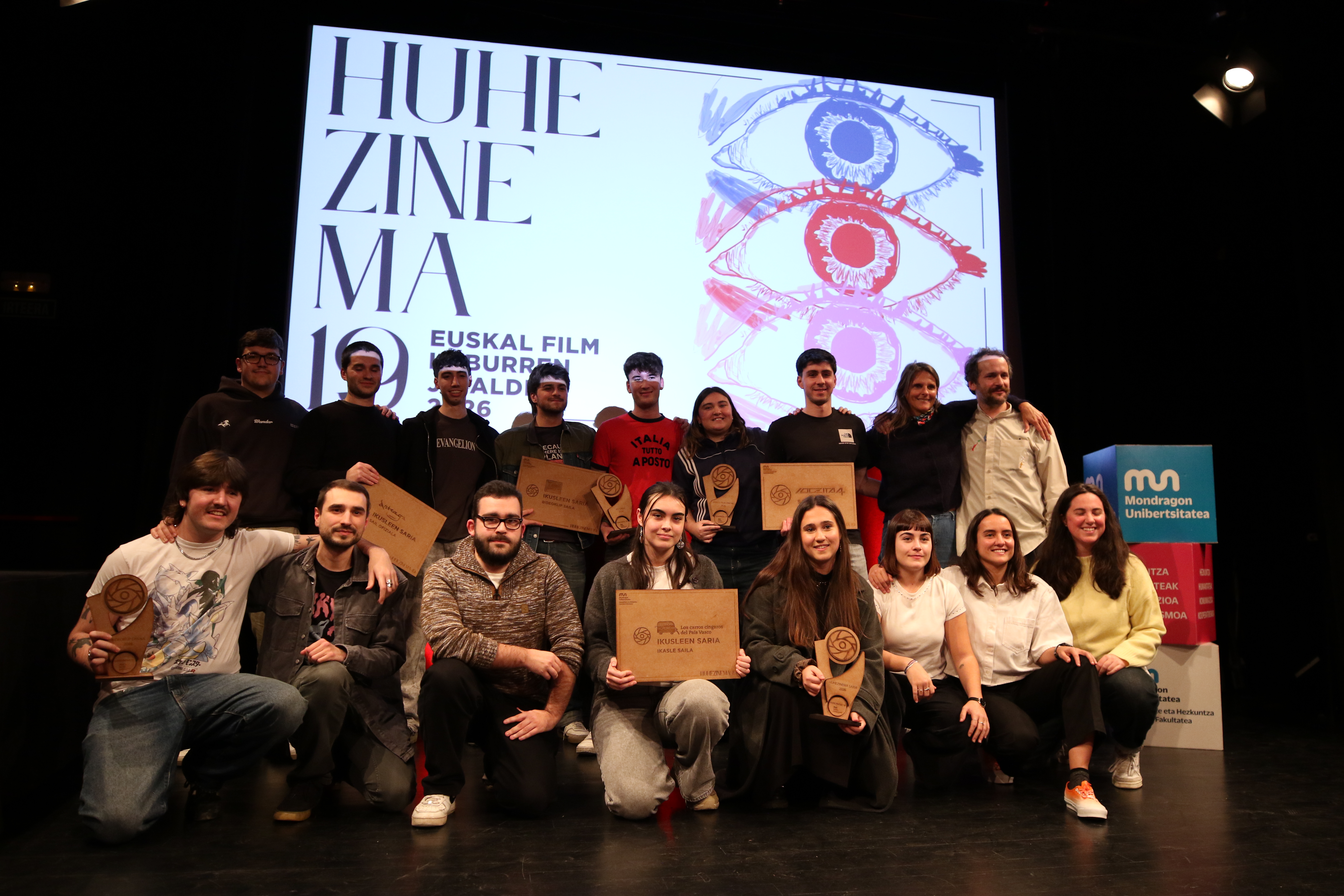 Ondoren iritsi da jaialdiaren unerik gorena: Sari Banaketa. Banan-banan, irabazleek garaikurrak jaso dituzte, aretoko emozioa eta zirrara gorenera eramanez. Saritutako zuzendariek Huhezinemak eskaintzen dien ikusgarritasuna eta bultzada eskertu dute, jaialdiak sortzaile berriekin eta ikus-entzunezkoen arloko profesionalekin duen konpromisoa berretsiz.